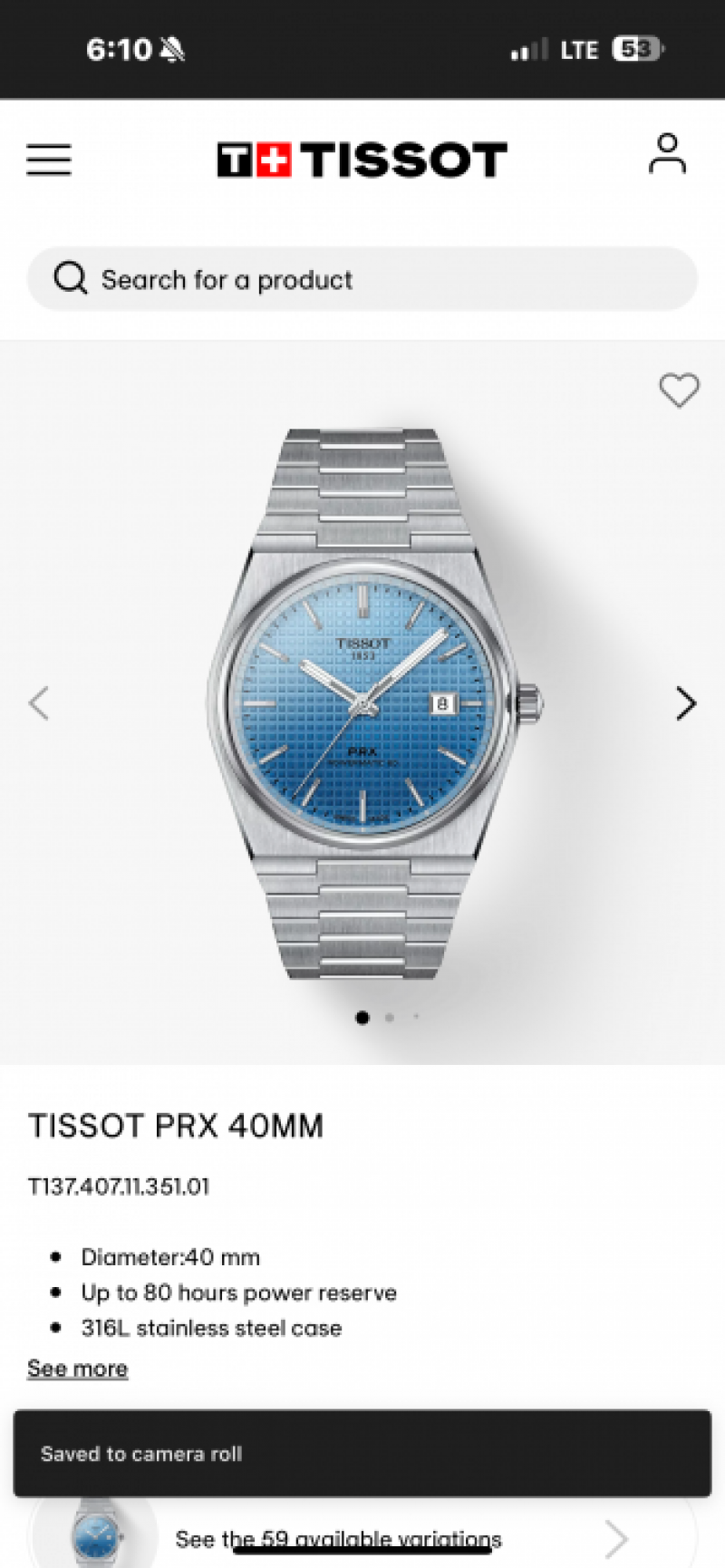 Tisso t PRX Premium Watch Back open wc550