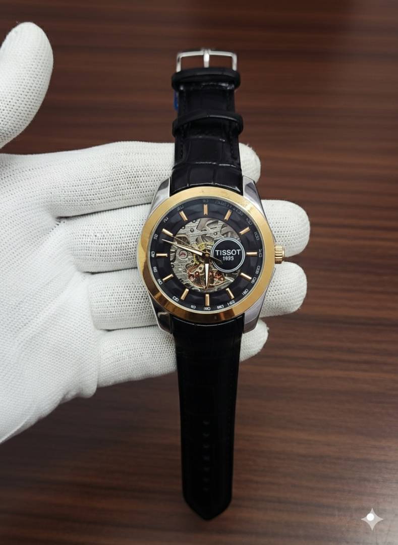 TISSOT AUTOMATIC BLACK GOLD BLACK BLACK LEATHER BELT