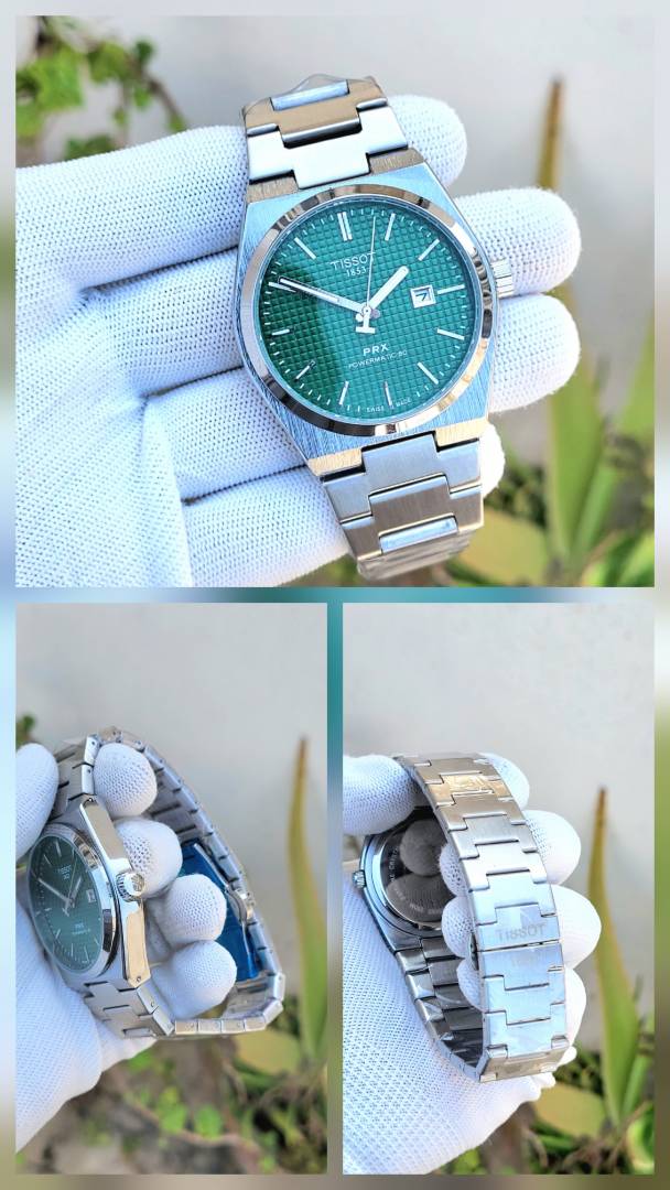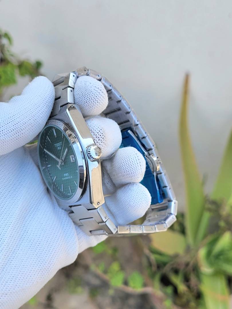 TISSOT PRX QUARTZ SILVER GREEN TEXTURE DIAL